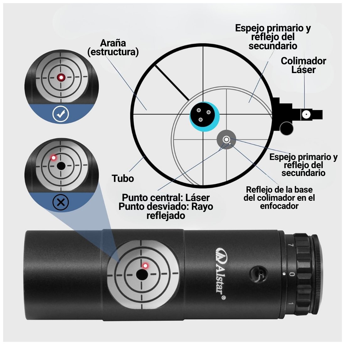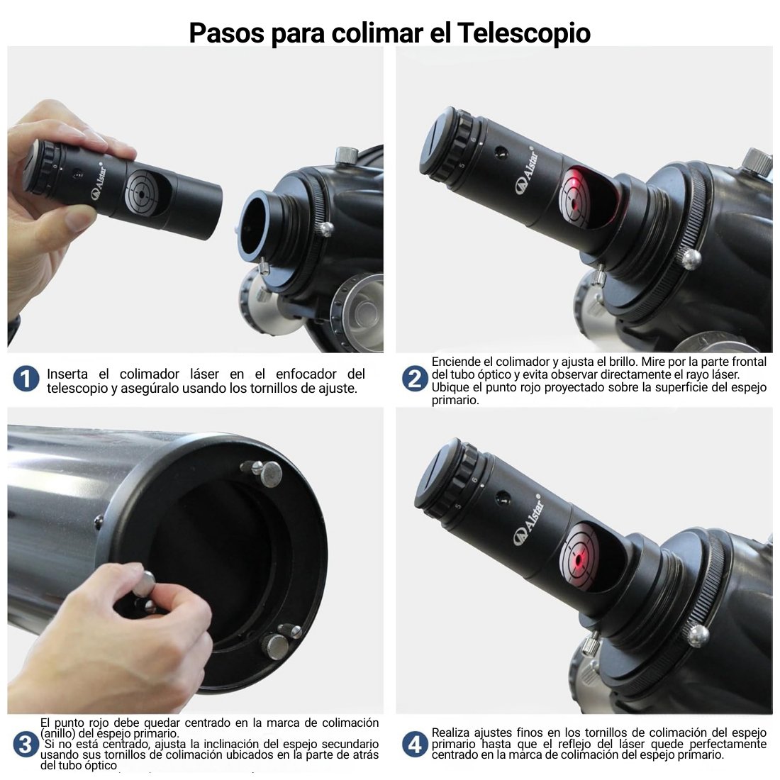 La colimación es esencial para obtener imágenes nítidas y detalladas en tu Telescopio reflector newtoniano, reflectores dobsonianos y reflectores Schmidt-Cassegrain. El Ocular de Cheshire de Colimación de Metal de 1.25" es una herramienta indispensable para garantizar un alineado preciso de los espejos de tu Telescopio.