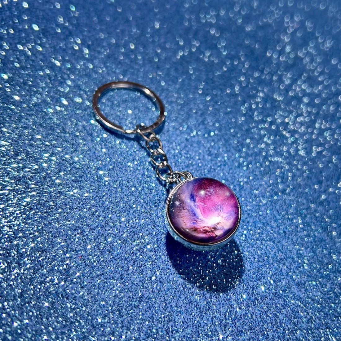 Este espectacular llavero doble cara muestra una Galaxia Espiral en todo su esplendor. Ideal para quienes sueñan con las estrellas y se inspiran en la inmensidad del Cosmos.